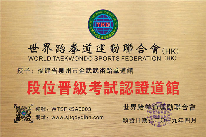 - 福建省泉州市金武武術跆拳道館加入聯合會2023-06-11